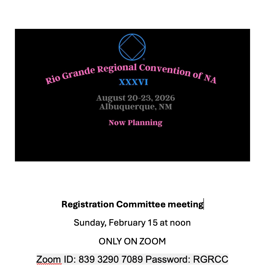 RGRCNA XXXVI Registration Committee Meeting