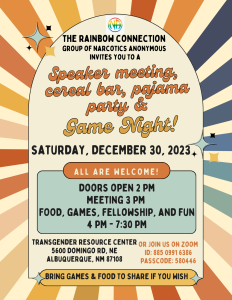 Speaker meeting, cereal bar, pajama party and GAME NIGHT!